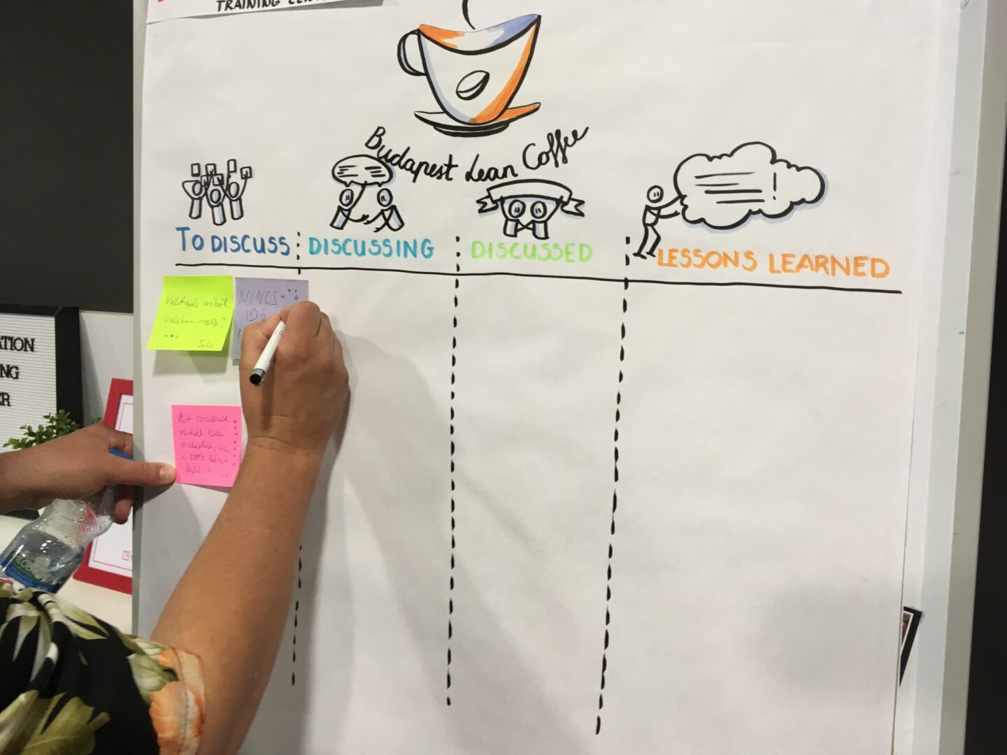 Az előadás után is hatása voltunk a témának, természetesen a Lean Coffee táblánkra is felkerült a témának. Remek volt újra személyesen beszélgetni szakmai kérdésekről, megvitatni az elakadásokat, ötleteket adni a továbblépéshez.