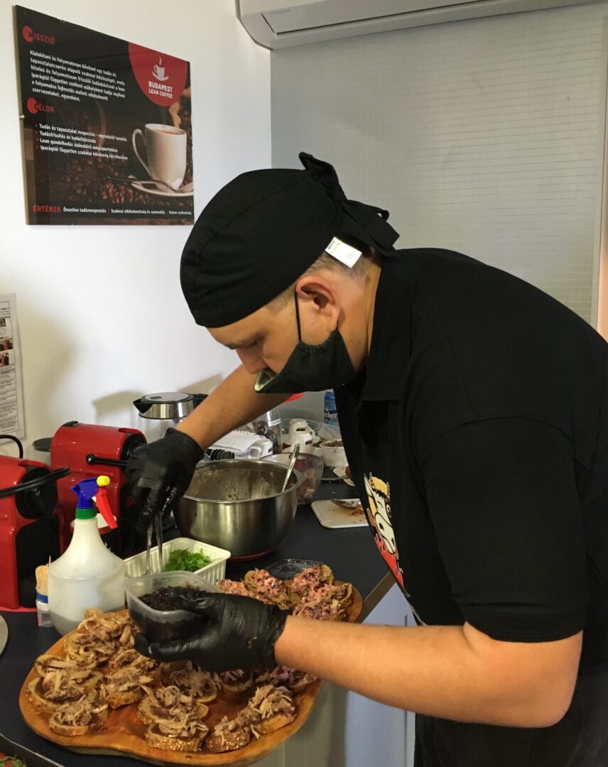 Az este igazi kuriózuma volt a BociBBQ által biztosított pazar szendvicsvacsora. Friss omlós hús, ízletes szószok, fantasztikus tálalás – minden falatban érezhető volt a készítő szenvedélye, a tökéletességre törekvés – le a kalappal Szabó Csaba!